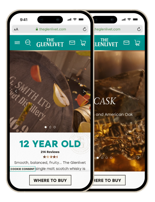 EXECUTION: A dynamic and engaging entry point into the whisky world of The Glenlivet. The website encourages brand discovery and product shopping.